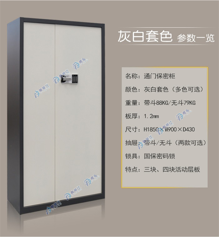顏色:灰白套色 規(guī)格:H1850xW900xD430mm 用途:適合儲放各種貴重物品:重要檔案,珍貴財物,公司印章,貴重器材等。