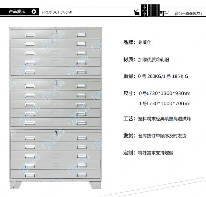 洛陽弗萊仕金屬制品有限公司是一家集科研,設(shè)計,制造,銷售,安裝,售后服務(wù)于一體的鋼制家具專業(yè)生產(chǎn)企業(yè)。我公司支持產(chǎn)品定制,可根據(jù)客戶需求,設(shè)計方案,部分產(chǎn)品可以免費(fèi)上門測量。公司自成立以來,尤為重視產(chǎn)品的創(chuàng)新和改良,擁有一支10人的高技能研發(fā)團(tuán)隊,重點研究用戶體驗,社會需求,共有百余款新品陸續(xù)推廣,多項專利產(chǎn)品廣受用戶好評。使得弗萊仕公司連續(xù)兩年榮獲洛陽鋼制家具最快進(jìn)步殊榮。